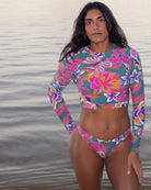 Perfect for catching waves or soaking up the sun, this cropped long sleeve top shields your chest and shoulders just right.
