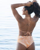 Playful, high-waisted swimwear with all the perks! These bottoms offer full coverage without any pesky seams. Feeling creative? Fold them down at the waistline for a different look – they're reversible too!